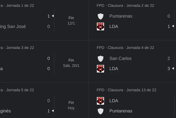 La próxima jornada, Alajuelense recibirá a Puntarenas FC en el estadio Morera Soto. El partido es el 8 de febrero.