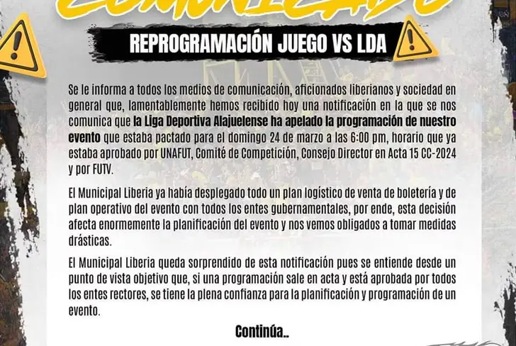 “El Municipal Liberia queda sorprendido de esta notificación, pues se entiende desde un punto de vista objetivo que si una programación sale en actas y está aprobada por todos los entes rectores, se tiene la plena confianza para la planificación y programación del evento”, indican.