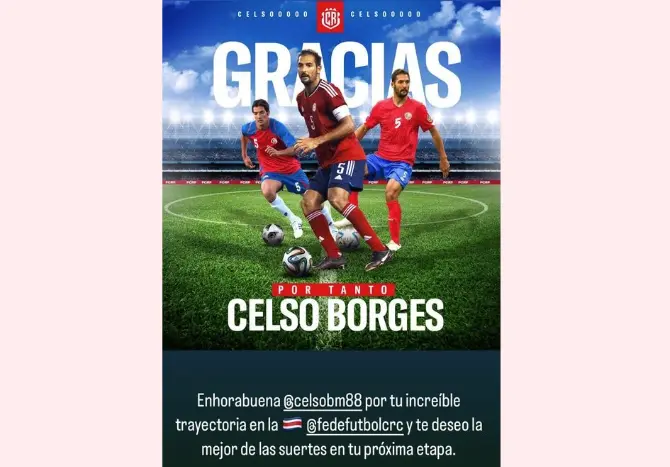 “Enhorabuena, Celso Borges por tu increíble trayectoria en la Selección de Costa Rica y te deseo la mejor de las suertes en tu próxima etapa”, escribió el jerarca en su cuenta oficial de Instagram.