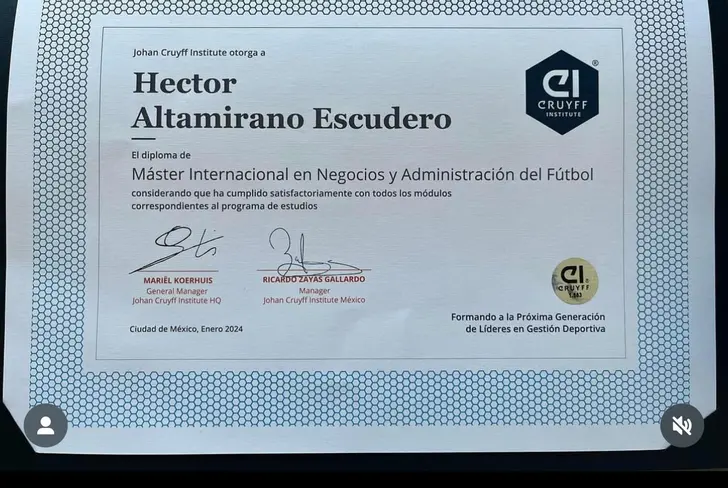 Altamirano es el técnico de moda en el país en los últimos días, esto luego de gestar y comandar la remontada épica e histórica frente al Toluca en CONCACAF Champions Cup, ahora además recibió un diploma que lo acredita como Máster Internacional en Negocios y Administración del Fútbol.