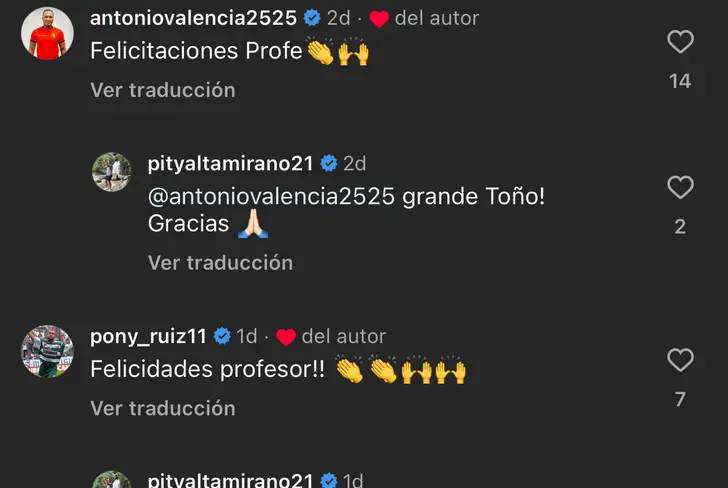 Ante el post, Antonio Valencia le respondió al exentrenador de Gallos blancos, “Felicitaciones profe”, y unos aplausos en emoji.