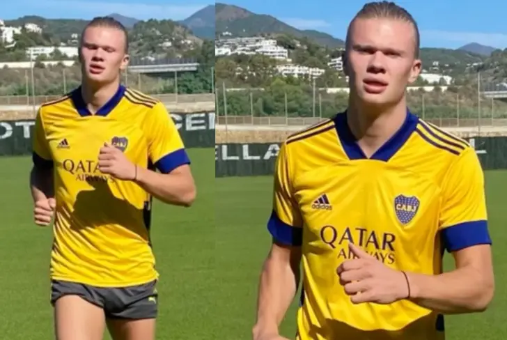 En el pasado, Haaland ha posado con la casaca azul y oro del Boca Juniors, con el detalle de que la misma lleva la inscripción N.º 10 y el nombre de Diego Armando Maradona.