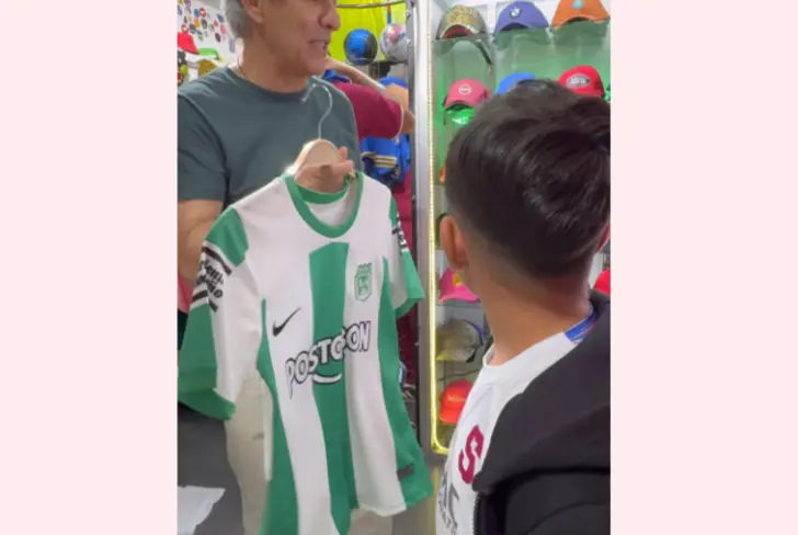 Al final, el pequeño escogió una camiseta de Millonarios, club en donde juega el tico Juan Pablo Vargas, y una del Atlético Nacional.