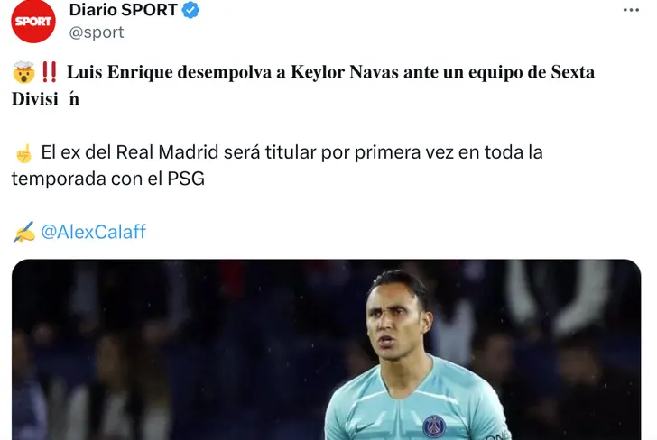 El reconocido diario Sport, en ese país, hizo una publicación sobre el regreso de Navas, en la que aseguraron que el técnico español, Luis Enrique, solo se acordó de él para un partido de la Copa de Francia y ante un equipo de sexta división.