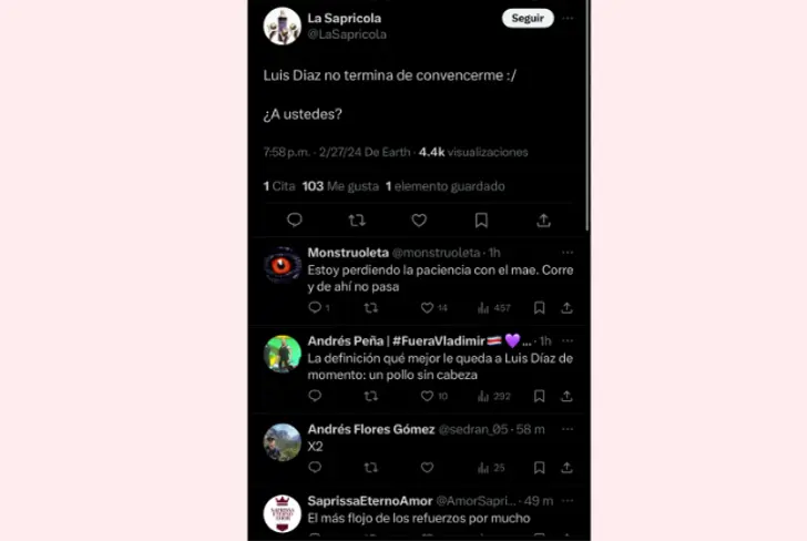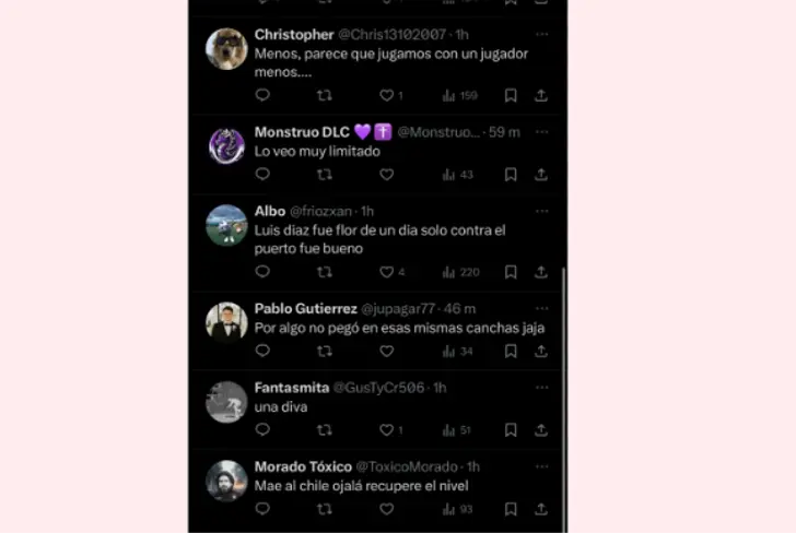En la red social X, los seguidores morados se dejaron decir que Díaz les ha quedado debiendo.