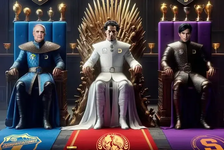 En la candente imagen aparecen tres tronos donde permanecen sentados los respectivos técnicos campeones en sus países, Pedro Troglio con el Olimpia aparece en el centro principal, acompañado a sus lados por Vladimir Quesada quien fue campeón con el Saprissa y a su otro lado aparece Willy Olivera, campeón del fútbol chapín con el Comunicaciones.