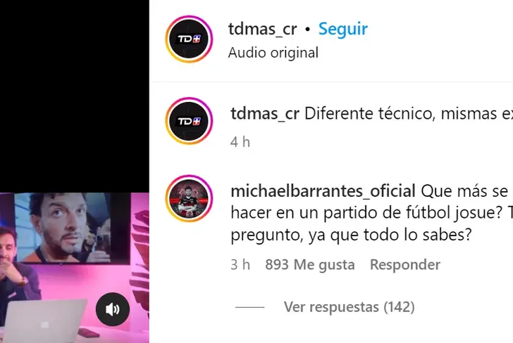 Michael Barrantes, jugador de Liga Deportiva Alajuelense, no se quedó callado y le contestó al periodista Josué Quesada los comentarios y críticas que hizo días atrás.