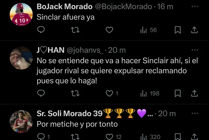 Los hinchas no podían creer que Sinclair fuera el acompañante de Warren Madrigal en el ataque y por eso iniciaron la lluvia de comentarios negativos contra el jugador, a quien no le ha ido muy bien con el Monstruo.