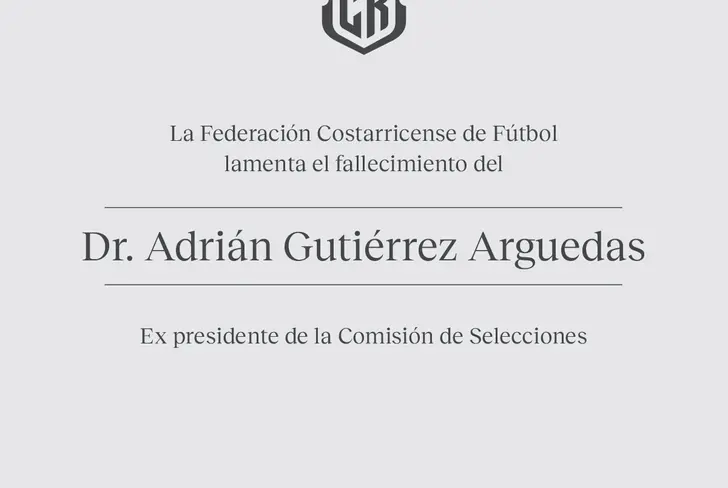 “La Liga Nacional de Fútbol Aficionado (LINAFA) lamenta el deceso del doctor Adrián Gutiérrez Arguedas, quien en vida fue un gran profesional, excelente persona y enorme amigo de nuestra organización.