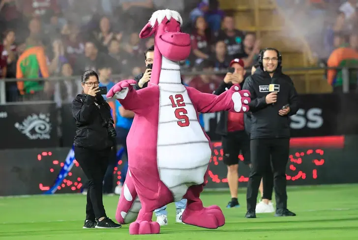 Faltando solo 15 minutos para iniciar el partido, los aficionados invocaron a la nueva mascota, la idea era que los morados llenaran una barra que medía el ruido hasta los 120 decibeles, esto fue logrado, luego un minuto de cantar, por lo que salió la mascota.