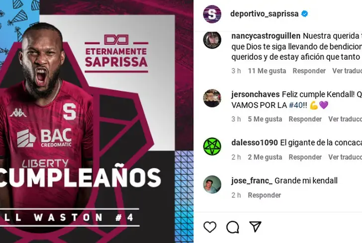 El Saprissa hizo ruido desde muy temprano sobre el cumpleaños de Waston, con una publicación que le dedicó en sus redes sociales y de la que se “guindaron” decenas de morados para felicitar al jugador.