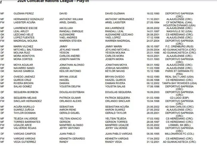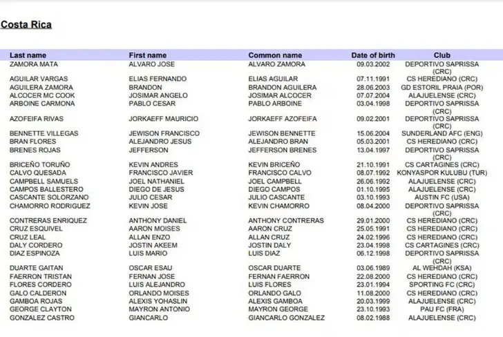 Parte de los futbolistas de la Liga Promerica que se colaron son: Elías Aguilar del Herediano, Joel Campbell o Kevin Chamorro; pero también hay sorpresas como Luis Flores de Sporting FC, Yeiland Mitchell y Yeison Molina de Guanacasteca.