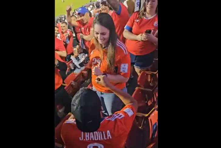 En medio de la goleada que le propinó Costa Rica a Honduras por el repechaje para la Copa América 2024, un seguidor de la Selección Nacional se arrodilló y le pidió matrimonio a su novia.