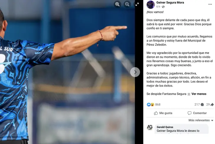 Este lunes, Geiner Segura sorprendió a los seguidores del fútbol que deja de ser el director técnico del Municipal Pérez Zeledón. ¿Será que va para Alajuelense?