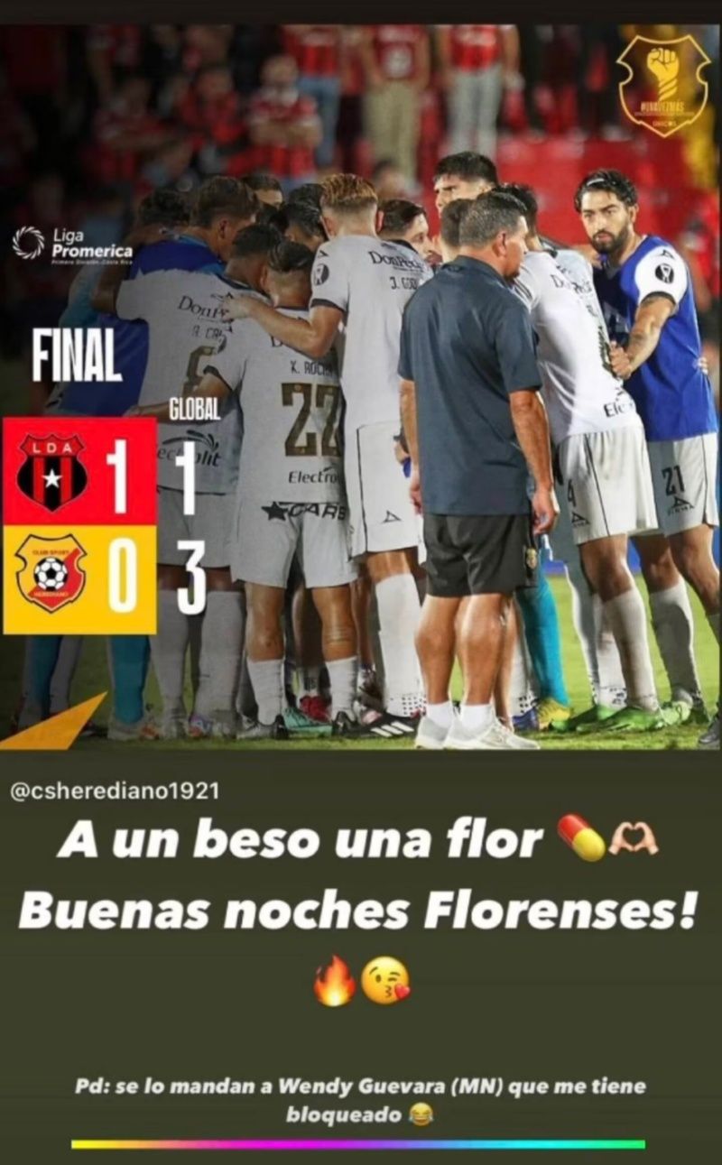 “Es bien sabido que soy superaficionada, tengo 14 años de ir al estadio sin faltar, he criticado públicamente jugadores mil veces, me he enojado con el mismo equipo, he llorado cuando perdemos y desde ese lugar siempre vendrán mis comentarios hacia el fútbol costarricense. Nada es personal y hay que dejar de tomárselo como tal”, escribió.